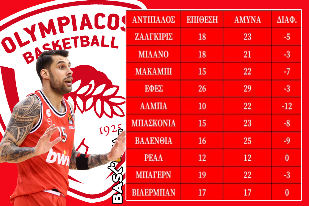 Ο Ολυμπιακός είχε μεγάλες δυσκολίες στην επίθεση σε ένα παιχνίδι στο οποίο δεν βρήκε ποτέ ρυθμό. Οι 63 πόντοι δεν είναι η χειρότερη φετινή επίδοση του αφού είχε 61 στη Μόσχα κόντρα στην ΤΣΣΚΑ, αλλά είναι αρνητικό ρεκόρ περιόδου για τα εντός έδρας παιχνίδια του. Στατιστικά έκανε το χειρότερο παιχνίδι του στο ΣΕΦ, όπως δείχνουν οι 67 βαθμοί του στο ranking, αφού είχε 71 στο ματς με την Μπασκόνια.