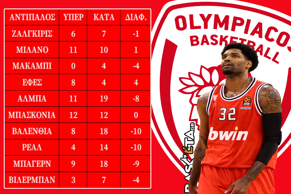 *Ο φόργουορντ του Ολυμπιακού με τα δύο επιθετικά ριμπάουντ που είχε κόντρα στη Βιλερμπάν, έγινε ο 24ος στην ιστορία της ομάδας στη διοργάνωση που έφτασε τα 50.