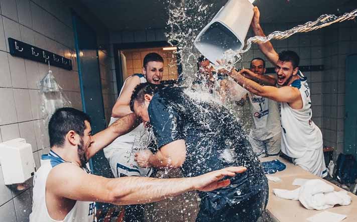 Δεν γλύτωσαν το μπουγέλο, τόσο ο Ηλίας Παπαθεωδόρου όσο και οι Γιώργος Λιμνιάτης και Γιώργος Δοξάκης, οι οποίοι με το που κατευθύνθηκαν στα αποδυτήρια, δέχθηκαν την «ψυχρολουσία» από τους αθλητές της ομάδας.