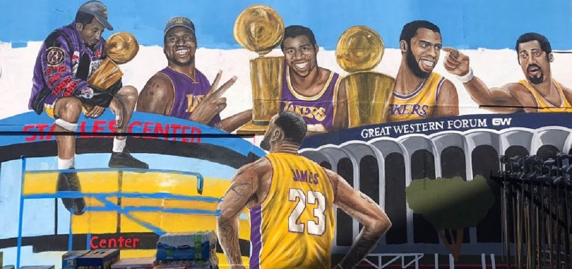 .@KingJames is being welcomed to LA with a mural ? (artwork by @never1959, @The7thLetter) pic.twitter.com/T4igbLldUT