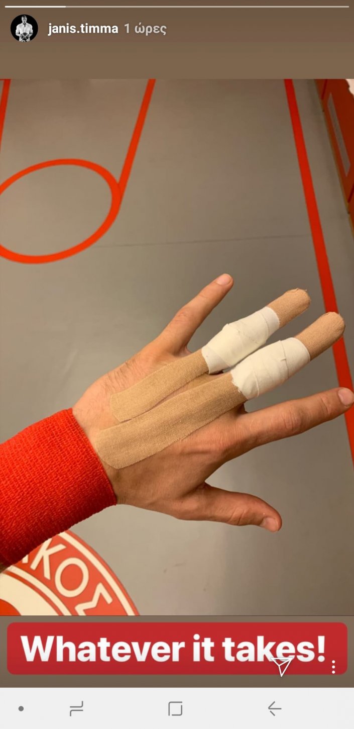 Ο 26άχρονος φόργουορντ υπέστη συνδεσμική κάκωση στο μέσο και παράμεσο του αριστερού του χεριού και δεν αγωνίστηκε στο πρόσφατο ματς με τον ΠΑΟΚ στο κλειστό της Πυλαίας για την Basket League. Ωστόσο, δεν θέλει να χάσει και το ντέρμπι «αιωνίων» της 16ης αγωνιστικής της Ευρωλίγκας και δείχνει διατεθειμένος να κάνει ό,τι χρειαστεί για να καταφέρει να θέσει εαυτόν στη διάθεση του προπονητή του, Ντέιβιντ Μπλατ. Χαρακτηριστικό, άλλωστε, είναι το μήνυμα που έστειλε μέσω του προσωπικού λογαριασμού του σε γνωστή ιστοσελίδα κοινωνικής δικτύωσης. «Whatever it takes!», έγραψε ο Λετονός στο Instagram, δίνοντας παράλληλα στη δημοσιότητα φωτογραφία με το δεμένο χέρι του.