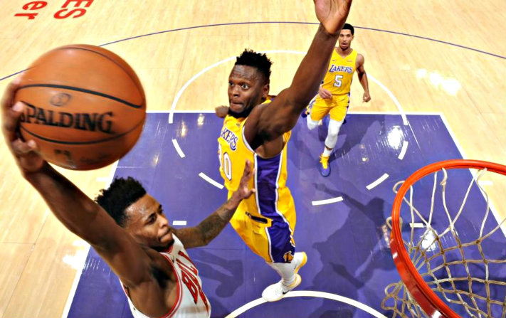 Οι Λέικερς επικράτησαν στο «Staples Center» των Μπούλς με 103-94, αλλά αυτός που έκλεψε την παράσταση στην κορυφή του Top-5 ήταν ο 21χρονος γκαρντ Αντόνιο Μπλάκνεϊ ο οποίος κάρφωσε στο πρόσωπο του Τζούλιους Ράντλ.