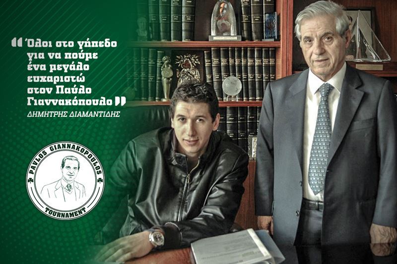 Η ανακοίνωση: «Ο Δημήτρης Διαμαντίδης είναι ένας αθλητής-«μύθος» για τον Παναθηναϊκό ΟΠΑΠ αλλά και συνολικά για το ευρωπαϊκό μπάσκετ. Ο εμβληματικός αρχηγός του «τριφυλλιού» δεν θα μπορούσε να απουσιάσει από το 1ο Τουρνουά «Παύλος Γιαννακόπουλος», που θα διεξαχθεί το διήμερο 27 και 28 Σεπτεμβρίου στο ΟΑΚΑ με τη συμμετοχή του Παναθηναϊκού ΟΠΑΠ, της Μακάμπι FOX Τελ Αβίβ, της Φενέρμπαχτσε και της Χίμκι εις μνήμην του ιστορικού ηγέτη του «τριφυλλιού».