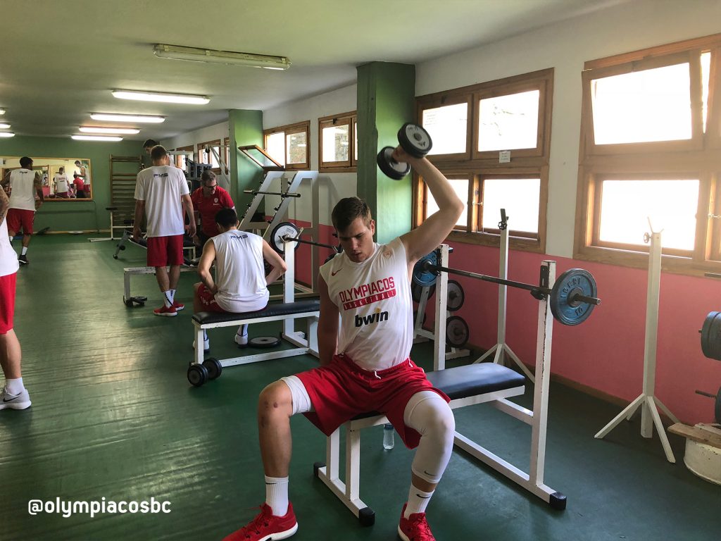 Τρίτη μέρα δουλειάς στο Μέτσοβο για τον Ολυμπιακό και η ερυθρόλευκη κάμερα βρισκόταν σήμερα στο γυμναστήριο. Όχι παρκέ, όχι μπάλες, αλλά βάρη και ασκήσεις, απαραίτητες κι αυτές για μια χρονιά υψηλών απαιτήσεων με τους παίκτες να περιμένει μεγάλος αριθμό αγώνων.