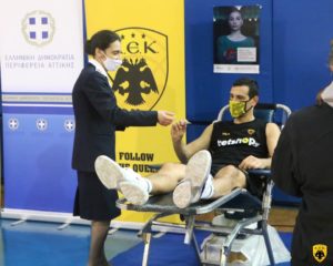 Η ΑΕΚ διοργάνωσε το πρωί της Τρίτης στο ΟΑΚΑ εθελοντική αιμοδοσία. Παρόντες στο προπονητήριο του κλειστού των ολυμπιακών εηκαταστάσεων ήταν ο περιφερειάρχης Αττικής, Γιώργος Πατούλης, και ο Μάκης Αγγελόπουλος.