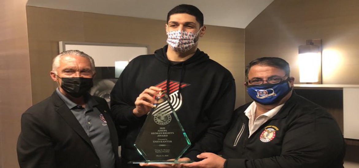 @OrderOfAHEPA is proud to present its #AHEPA Human Rights Award to Enes Kanter of the Portland Trailblazers. Congratulations to this outstanding activist and voice of reason. AXIOS! @EnesKanter @trailblazers @NBA pic.twitter.com/TMoXZTqj06