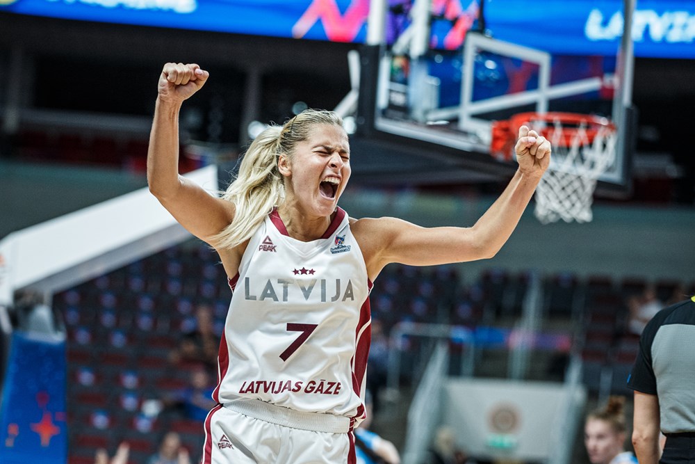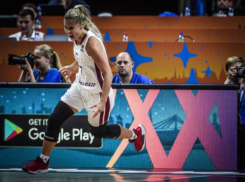 Χθες οδήγησε την ομάδα της στη νίκη επί της Ουκρανίας με 82-74. Η ίδια σημείωσε 33 πόντους, που είναι ρεκόρ για την Εθνική Λετονίας και είχε ακόμη 6 ριμπάουντ, 7 ασίστ και 3 κλεψίματα. Στον σημερινό αγώνα απέναντι στην Ισπανία που βρίσκεται σε εξέλιξη, έχει ήδη να κάνει μια φάση που βρήκε τη θέση του highlights.