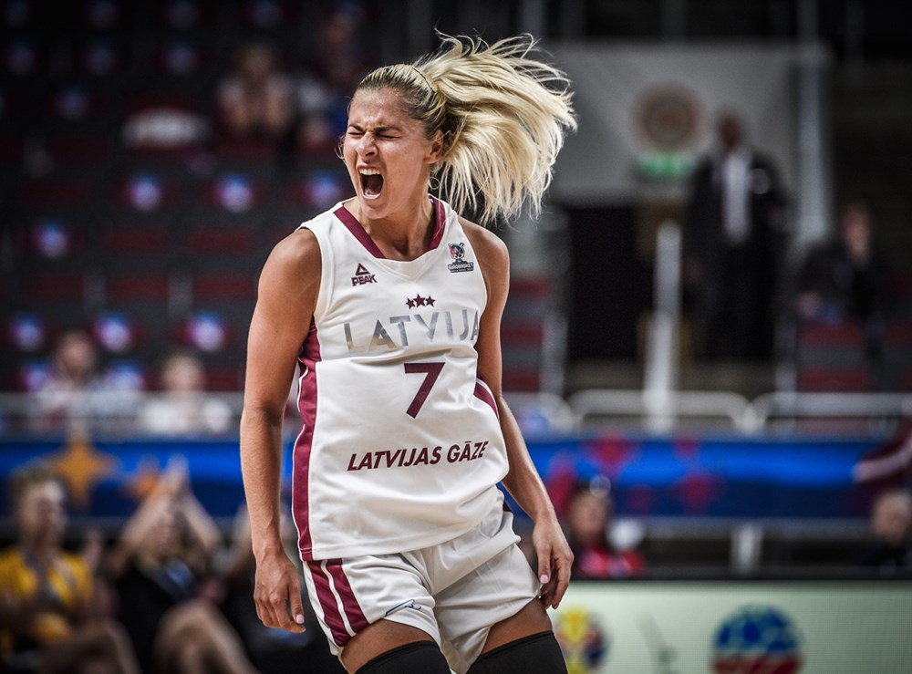 Χθες οδήγησε την ομάδα της στη νίκη επί της Ουκρανίας με 82-74. Η ίδια σημείωσε 33 πόντους, που είναι ρεκόρ για την Εθνική Λετονίας και είχε ακόμη 6 ριμπάουντ, 7 ασίστ και 3 κλεψίματα. Στον σημερινό αγώνα απέναντι στην Ισπανία που βρίσκεται σε εξέλιξη, έχει ήδη να κάνει μια φάση που βρήκε τη θέση του highlights.