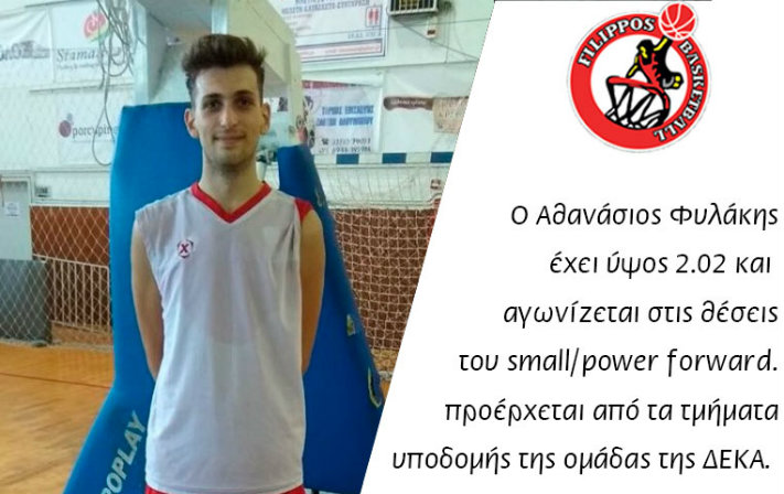 «Η ΔΕ του τμήματος καλαθοσφαίρισης του ΑΠΣ Φίλιππος Βέροιας με χαρά ανακοινώνει την απόκτηση του Αθανάσιου Φυλάκη για την αγωνιστική σαιζόν 2019-20. Ο νεαρός 18χρονος αθλητής (22/01/2001) έχει ύψος 2.02 και αγωνίζεται στις θέσεις του small/power forward.