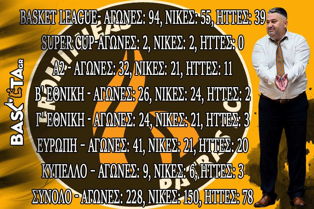 Το basketa.gr συγκέντρωσε τους αγώνες και βέβαια τις 150 νίκες του Γιατρά ανά διοργάνωση στον πάγκο του Προμηθέα...