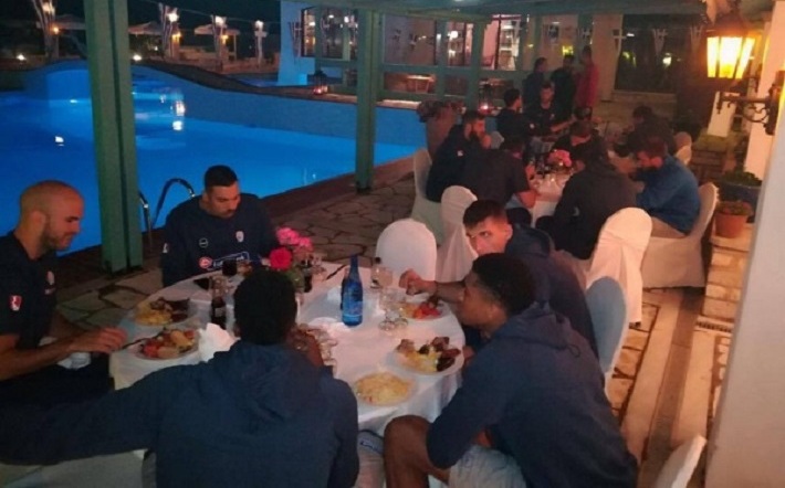 Εξάλλου, με ανακοίνωσή της η ΕΟΚ ενημέρωσε για το χθεσινό (31/07) δείπνο: «Η Εθνική Ανδρών ολοκληρώνει σήμερα (01/08) την παρουσία της στο Καρπενήσι και το πρώτο στάδιο της προετοιμασία της και το "αντίο" ήταν... γευστικό από τους ανθρώπους του ξενοδοχείου Μοντανά. Το αποχαιρετιστήριο δείπνο που στήθηκε υπό την... καθοδήγηση του Στάθη Πλατή, διευθυντή του ξενοδοχείου που παραδοσιακά φιλοξενεί την Εθνική παρέχοντας όλες τις ανέσεις με το άκρως εξυπηρετικό προσωπικό, ήταν πλούσια και φτιαγμένο με μεράκι από τον αγαπημένο μάγειρα των παικτών τον Μπάμπη και οι παίκτες το απόλαυσαν και με το παραπάνω.