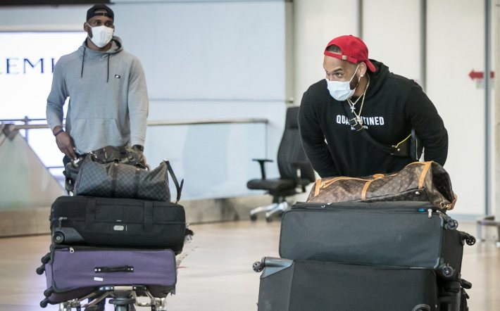 Ο Ντάριλ Μονρό και ο Ντ' Άντζελο Χάρισον είναι ανάμεσα στους παίκτες που επέστρεψαν, φορώντας μάλιστα και φούτερ "quarantined". Στο αεροδρόμιο τους περίμενε ένα πακέτο με τα απαραίτητα της εποχής: μάσκες, αντισηπτικά και όλα τα σχετικά.