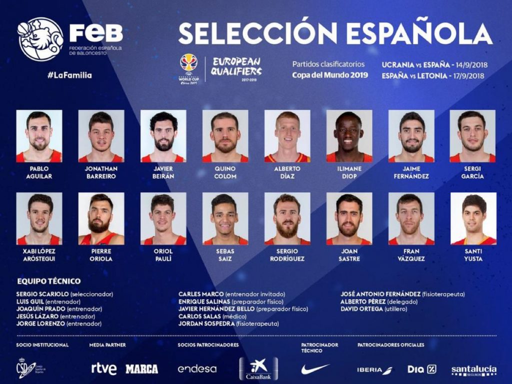 Η Εθνική Ισπανίας δεν ξέφυγε από τον γενικό κανόνα που θέλει τις Εθνικές Ομάδες να παρατάσσονται με σημαντικές απουσίες στα παράθυρα της FIBA στο δρόμο για το Παγκόσμιο Κύπελλο 2019. Ο πρόεδρος ομοσπονδίας της Ισπανίας, Χόρχε Γκαρμπαχόσα μαζί με τον ομοσπονδιακό προπονητή, Σέρτζιο Σκαριόλο παρουσίασαν την ομάδα, στην οποία δεν βρίσκονται ο Πάου και ο Μαρκ Γκασόλ, ο Ουίλι και ο Χουάντσο Ερνανγκόμεθ, ο Σερζ Ιμπάκα, ο Ρίκι Ρούμπιο, ο Άλεξ Αμπρίνες, ο Χοσέ Καλδερόν και ο Νίκολα Μίροτιτς.