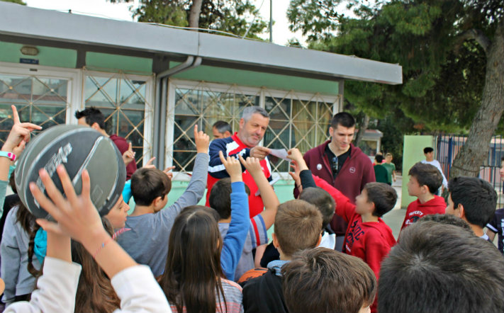 Το πρωί της Παρασκευής, ο κόουτς Δημήτρης Χουχουλής, ο αρχηγός μας Τάσος Καλλιανιώτης, ο Γιώργος Σταθόπουλος, αλλά και ο Διονύσης Κατσιώτης απο πλευράς της διοικούσας επιτροπής, επισκέφθηκαν το 1ο Δημοτικό Σχολείο της Νέας Ερυθραίας και μύησαν τους λιλιπούτειους φίλους μας στο μαγικό κόσμο του μπάσκετ, διδάσκοντάς τους μερικά απ' τα μυστικά του αθλήματος.