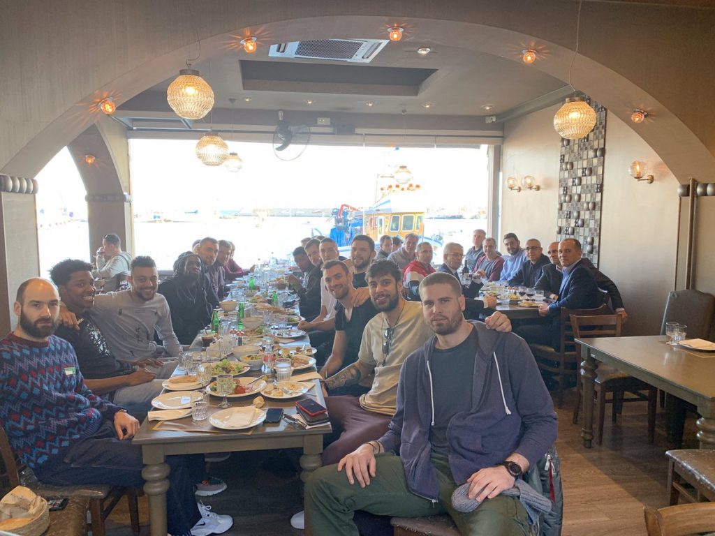Η προπόνηση ολοκληρώθηκε και οι παίκτες αντί πάρουν την άγουσα για τα σπίτια τους, κατευθύνθηκαν προς το Μικρολίμανο. Οι πρόεδροι του Ολυμπιακού, αδελφοί Αγγελόπουλοι, είχαν καλέσει όλη την ομάδα για γεύμα και ήταν άπαντες παρόντες. Ήταν μια κίνηση συσπείρωσης με τους "ερυθρόλευκους" να διανύουν μια δύσκολη περίοδο και ενόψει της αυριανής ιδιαίτερα σημαντικής όπως έχει εξελιχθεί η κατάσταση, αναμέτρησης.