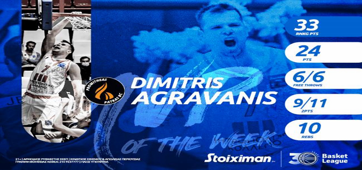 Ο Αγραβάνης είναι ο τρίτος Έλληνας μπασκετμπολίστας που αναδεικνύεται Πολυτιμότερος μέχρι τώρα στην φετινή σεζόν της Basket League ύστερα από τον Νίκο Δίπλαρο του Απόλλωνα Πάτρας Oscar (1η και 3η αγωνιστική) και τον Σάσα Βεζένκοφ του Ολυμπιακού (1η αγωνιστική) που τον θεωρούμε «δικό» μας.