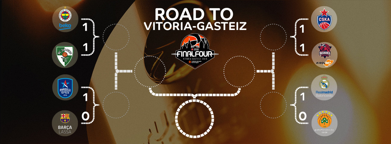 Μπασκόνια και Ζαλγκίρις Κάουνας έκαναν την ανατροπή, πήραν εκτός έδρας νίκες από ΤΣΣΚΑ Μόσχας και Φενέρμπαχτσε και άλλαξαν την εικόνα στις δύο αυτές σειρές, όπου θεωρητικά υπήρχαν ξεκάθαρα φαβορί, κάνοντας το 1-1. Αύριο θα γίνουν οι δεύτεροι αγώνες στις άλλες δύο σειρές. Η Ρεάλ Μαδρίτης βρίσκεται στο 1-0 απέναντι στον Παναθηναϊκό που θα έχει την δική του ευκαιρία να ισοφαρίσει τη σειρά αύριο (19/4, 22.15) στην Ισπανία. Την δική της ανατροπή θα προσπαθήσει να κάνει και η Μπαρτσελόνα στην Πόλη , απέναντι στην Αναντόλου Έφες (19/4, 20.15).