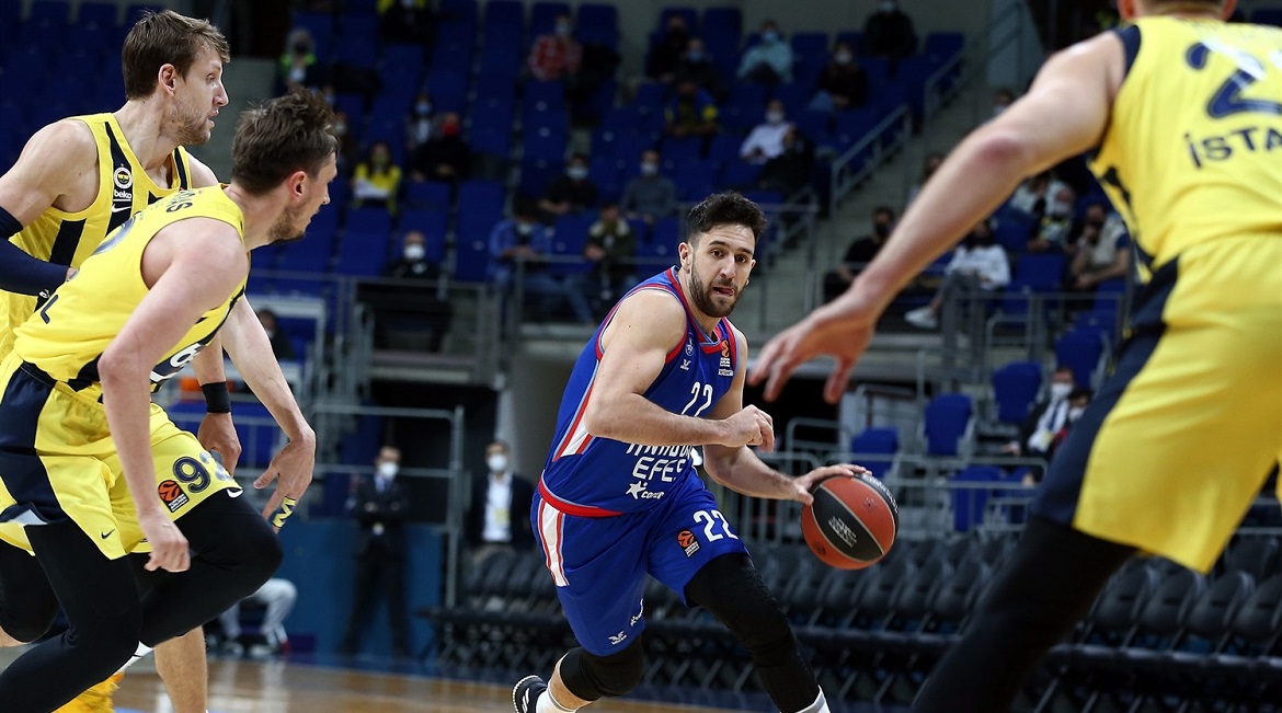 Η Εφές ήταν καταιγιστική στο πρώτο ημίχρονο. Με τον Μίσιτς να δίνει ρεσιτάλ σε οργάνωση και εκτέλεση και την άμυνα να έχει μπλοκάρει κάθε λειτουργία της Φενέρ, προηγήθηκε με 24-11 στο δεκάλεπτο, πήγε στο +20, 22-42 στο 14'30'' και έκλεισε το ημίχρονο στο 39-53, με τους γηπεδούχους να βλέπουν το πρωταγωνιστικό τους δίδυμο Ντε Κολό και Βέσελι να ανεβαίνουν και να δίνουν σφυγμό.
