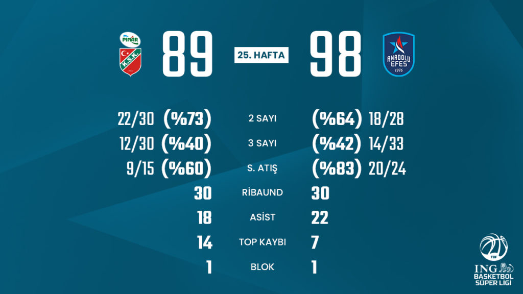 Η Εφές επέστρεψε στην Τουρκία ελαφρώς... σοκαρισμένη από την εξέλιξη του αγώνα της στο Μόναχο και την ήττα από τη Μπάγερν. Το πρόγραμμα είχε ντέρμπι σήμερα, στη Σμύρνη με τη δεύτερη Πινάρ Καρσίγιακα, αλλά οι παίκτες του Εργκίν Αταμάν έφυγαν... άβρεχτοι. Στην δυνατή πρόβα πριν από τον εντός έδρας αγώνα της ερχόμενης Πέμπτης με τον Παναθηναϊκό, η Εφές νίκησε με 98-89 καθοδηγούμενοι από το Αντριέν Μοερμάν.