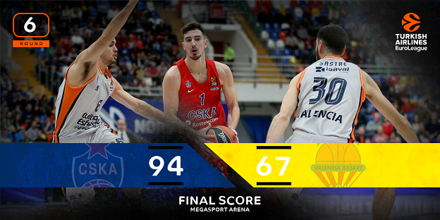 Η ΤΣΣΚΑ είδε τη Βαλένθια να της βάζει δύσκολα στο πρώτο δεκάλεπτο και... θύμωσε. Το τελικό 94-67 για την ομάδα του Δημήτρη Ιτούδη ήταν η 14η συνεχόμενη εντός έδρας νίκη και μια ακόμα επιβεβαίωση και της φετινής της ποιότητας.