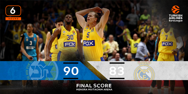 Η Μακάμπι δεν άφησε την ευκαιρία με την αποδεκατισμένη Ρεάλ που βρήκε απέναντί της να πάει χαμένη. Οι Ισραηλινοί πήραν τη νίκη με 90-83 και πολύ κουράγιο για τη συνέχεια, δείχνοντας τις περισσότερες εναλλακτικές που είχαν και μη επιτρέποντας στη Ρεάλ να ολοκληρώσει όποιες αντεπιθέσεις επιχείρησε.