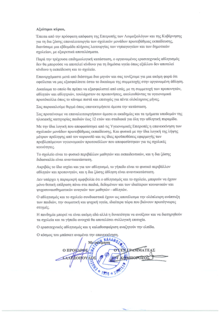 Διαβάστε αναλυτικά την επιστολή που έστειλε η ΕΣΚΑ :