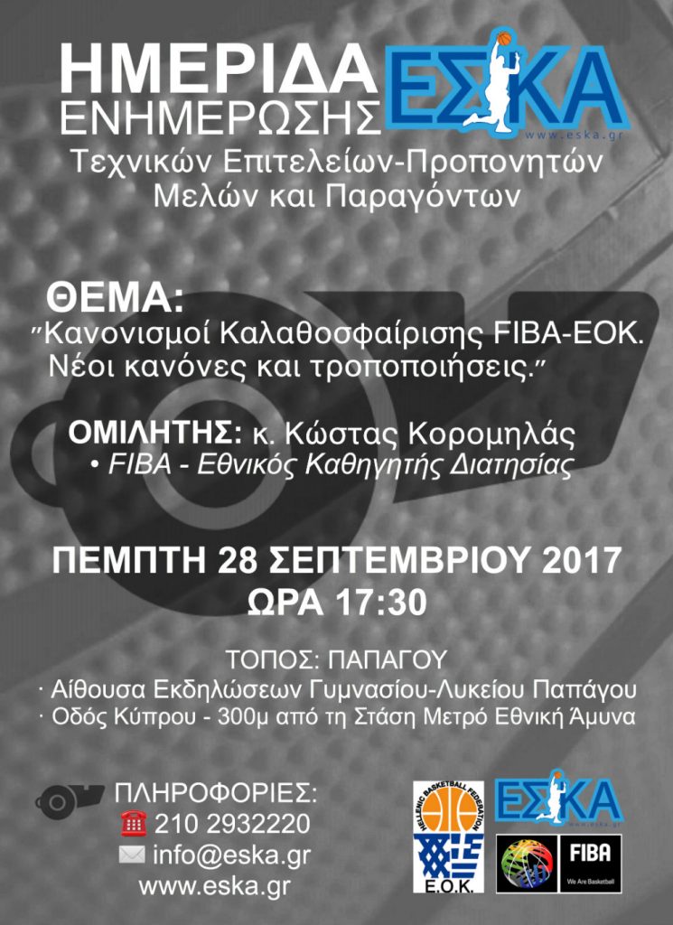 Ημερίδα με θέμα τους νέους κανονισμούς της FIBA και της ΕΟΚ διοργανώνει η ΕΣΚΑ.