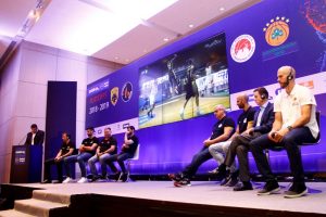 Οι προπονητές και οι αρχηγοί των τεσσάρων ομάδων που προκρίθηκαν στα ημιτελικά του ελληνικού πρωταθλήματος παραχώρησαν συνέντευξη Τύπου, πριν από την έναρξη των αγώνων την Τετάρτη (29/05). Για την πρώτη στην κανονική περίοδο «Ένωση» μίλησαν ο Λούκα Μπάνκι και ο Ντούσαν Σάκοτα και για τον αντίπαλό της στην τετράδα, το αχαϊκό συγκρότημα, οι Μάκης Γιατράς και Νικ Καλάθης. Από τους «κυανοκίτρινους» το λόγο πήραν ο Αργύρης Πεδουλάκης και ο Παναγιώτης Βασιλόπουλος, ενώ εκ μέρους των «πρασίνων» μίλησαν οι Ρικ Πιτίνο και Νικ Καλάθης. Στην εισαγωγική ομιλία τους, είπαν…