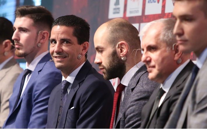 Την ώρα που ανέβηκαν οι πρωταγωνιστές για να πάρουν θέσεις με... αμηχανία είδαν ότι ακριβώς στο κέντρο του πάνελ, τα δύο διπλανά σκαμπό προορίζονταν για Βασίλη Σπανούλη και Ζέλικο Ομπράντοβιτς.