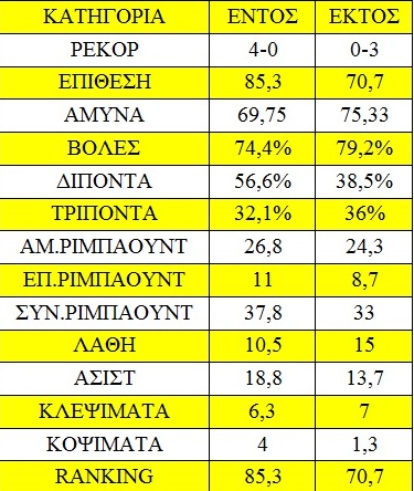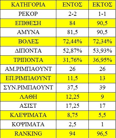 *Είχε έξι περισσότερους πόντους στην άμυνα