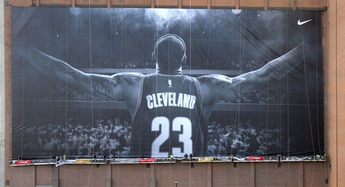 Σήμερα το πρωί, εργάτες κατέβασαν την αφίσα του Λεμπρόν που κοσμούσε εδώ και χρόνια το Κλίβελαντ.