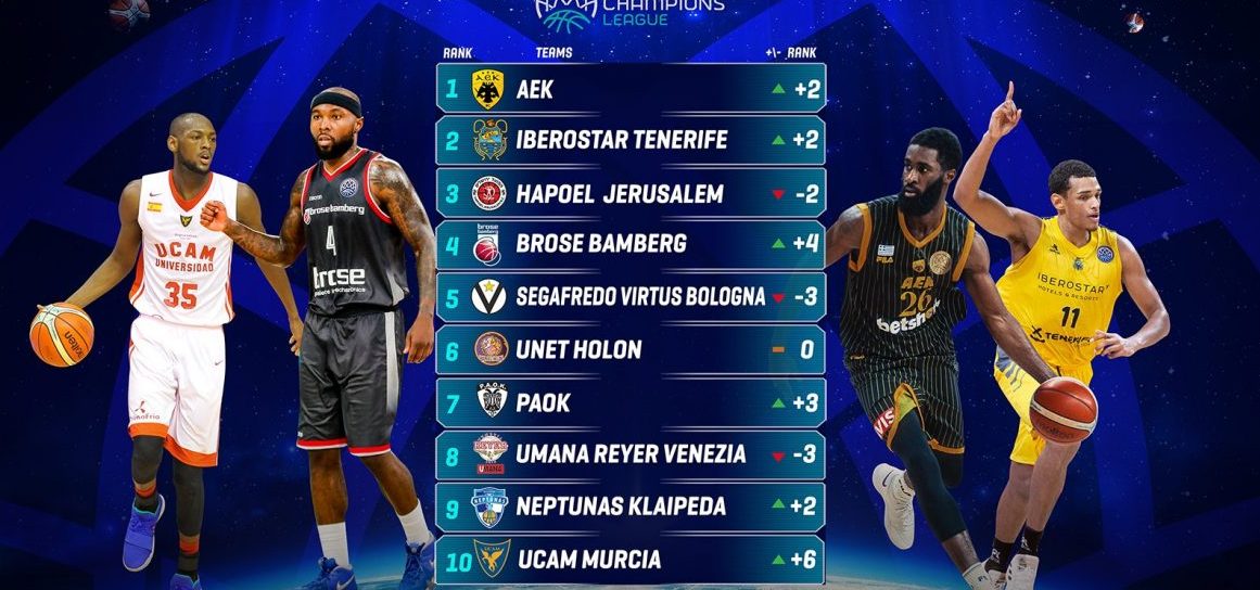 Η εκπληκτική πορεία που πραγματοποιεί εδώ και μερικές εβδομάδες η ΑΕΚ, έχοντας πετύχει εννέα συνεχόμενες νίκες και στις δύο διοργανώσεις όπου παίρνει μέρος, έχει εντυπωσιάσει τους διοργανωτές του Basketball Champions League. Και στα τελευταία power rankings που έφτιαξαν, την κατατάσσουν στην πρώτη θέση. Την θεωρούν δηλαδή, με βάση τα σημερινά δεδομένα, πρώτο φαβορί για την κατάκτηση και του φετινού τίτλου!