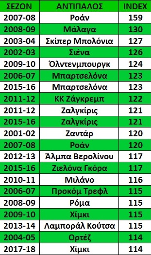 Αυτό δείχνουν τουλάχιστον οι 114 βαθμοί τους στο σύστημα αξιολόγησης που είναι η αφενός η 8η καλύτερη φετινή επίδοση στην Ευρωλίγκα κι αφετέρου η 20ή καλύτερη στην πράσινη ιστορία σε αυτήν…