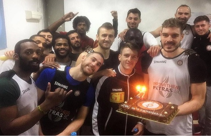 Μετά την ολοκλήρωση της τελευταίας προπόνηση του Προμηθέα εν όψει του αυριανού εντός έδρας αγώνα με την Κύμη, οι συμπαίκτες του είχαν ετοιμάσει μια μικρή γιορτή στα αποδυτήρια, με τούρτα, κεράκια και τον διεθνή σέντερ να εκφράζει τον ενθουσιασμό του με ποστάρισμα στον προσωπικό του λογαριασμό στο facebook.