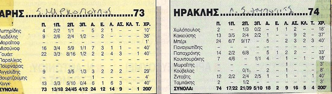 Ο Σλοβένος είχε μέχρι εκείνο το σημείο τέσσερις πόντους για να σημειώσει οχτώ από τους 10 τελευταίους πόντους του Ηρακλή, συμπεριλαμβανομένων και των δύο βολών που έκριναν το παιχνίδι στα 4''. Ο Ηρακλής υποχρέωσε τον πρώην προπονητή του Σούλη Μαρκόπουλο σε ήττα στο ντεμπούτο του στον πάγκο του Άρη με 73-74.