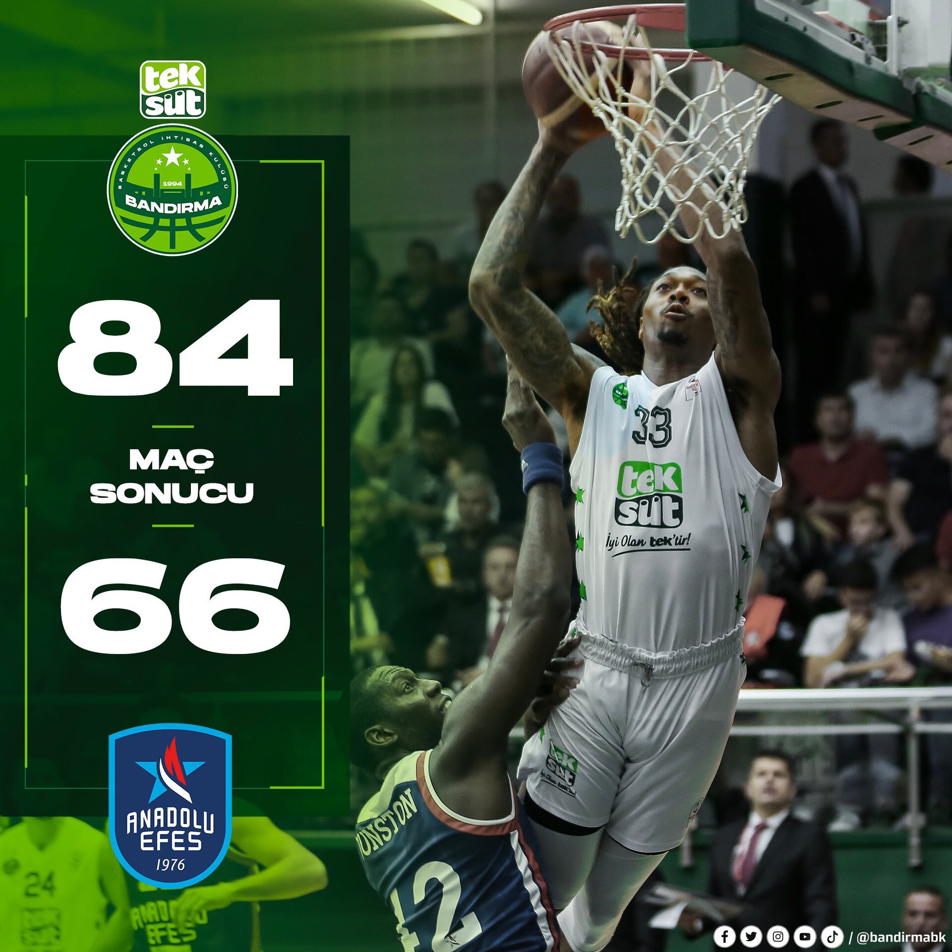 Η Μπαντίρμα έκανε την έκπληξη και επικράτησε εντός έδρας  της Εφές με το εμφατικό 84-66 για την 3η αγωνιστική του Τουρκικού πρωταθλήματος.