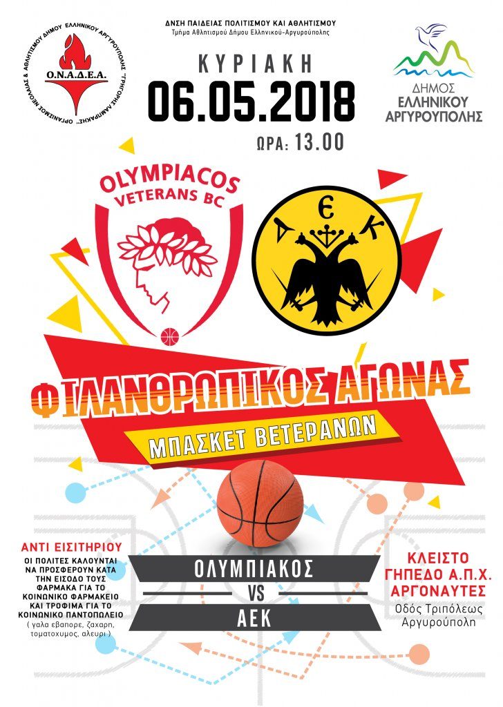 Η ανακοίνωση: «Η πρώτη ομάδα Βετεράνων ΑΕΚ είναι γεγονός! Με ενέργειες του Νίκου Μπαμπανικολού, πρωταθλητή Ελλάδος με την «Ένωση» του 1958, μέλους του Δ.Σ. της ΑΕΚ Β.C., οι «κιτρινόμαυροι» επιστρέφουν στην... ενεργό δράση και θα λάβουν μέρος στην πρώτη τους επίσημη αναμέτρηση με αντίπαλο τον Ολυμπιακό. Προπονητής της ΑΕΚ θα είναι ο Νίκος Τσοσκούνογλου. Η αναμέτρηση διεξάγεται για καλό σκοπό, ήτοι για την ενίσχυση του κοινωνικού φαρμακείου και κοινωνικού παντοπωλείου του Δήμου Ελληνικού-Αργυρούπολης. Ο αγώνας θα γίνει την Κυριακή 6 Μαΐου, στις 13:00, στο Κλειστό Α.Π.Χ. Αργοναύτες (οδός Τριπόλεως-Αργυρούπολη). Το επόμενο διάστημα θα ανακοινωθεί το ρόστερ, καθώς και άλλες εκπλήξεις, που αφορούν στην ΑΕΚ».