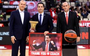 O Γιάννης Σφαιρόπουλος επέστρεψε στο ΣΕΦ ως αντίπαλος, χειροκροτήθηκε από τους φιλάθλους και βραβεύθηκε από την ΚΑΕ Ολυμπιακός.