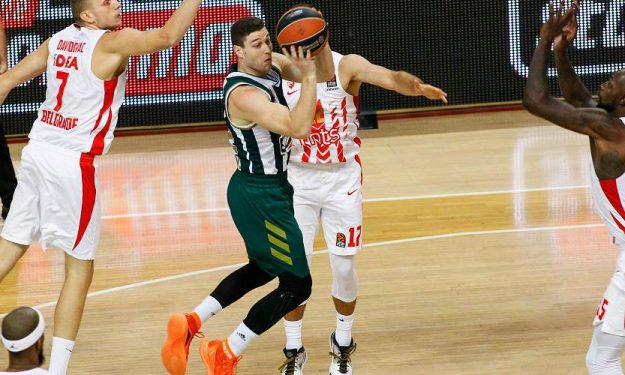 Ο Τζίμερ Φρεντέτ έδωσε πάσα ακριβείας στον Γιώργο Παπαγιάννη στην καρδιά της ρακέτας και ο διεθνή σέντερ του Παναθηναϊκού καρφώνει εντυπωσιακά στο καλάθι του Ερυθρού Αστέρα