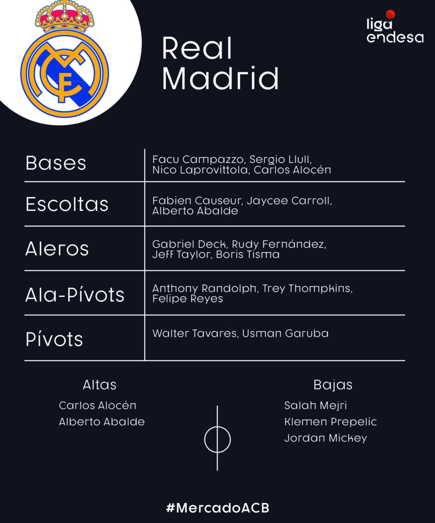 Τα νέα πρόσωπα είναι οι Κάρλος Αλοθέν (20χρ.) και Αλμπέρτο Αμπάλδε (24χρ.) στην περιφέρεια, ενώ προστέθηκε στο ρόστερ και ο Μπόρις Τίσμα (18χρ.), ο οποίος αναβαθμίστηκε από τις ακαδημίες της ομάδας. Ειδικά στη γραμμή των ψηλών τα πρόσωπα είναι γνωστά με τους Τόμπκινς, Γκαρούμπα, Ρέγες, Ράντολφ και Ταβάρες.