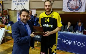 Ο 25άχρονος σέντερ φόρεσε την κυανοκίτρινη φανέλα από το 2015 μέχρι και το περασμένο καλοκαίρι, οπότε μετακόμισε στην ΑΕΚ. Στο πλαίσιο της 8ης αγωνιστικής της Basket League επέστρεψε στο κλειστό της Λαυρεωτικής ως αντίπαλος, με τη γηπεδούχο ΚΑΕ να του προσφέρει αναμνηστικά πλακέτα διά χειρός του κόουτς Χρήστου Σερέλη, ενώ ο αρχηγός Γιάννης Κουζέλογλου του έδωσε μια ανθοδέσμη.