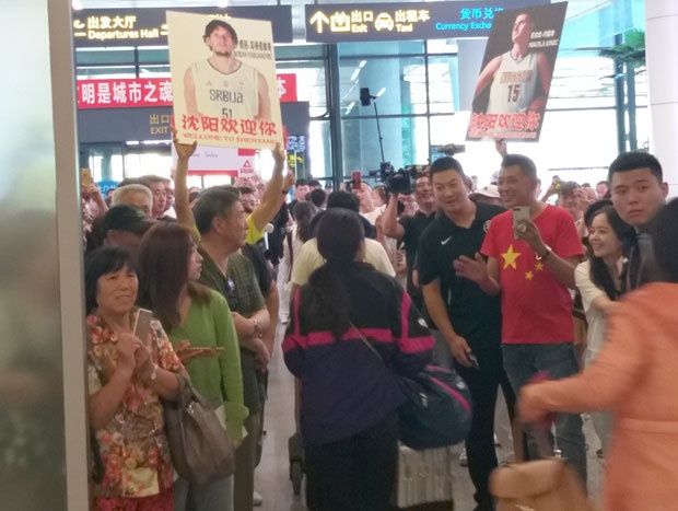 Την πρώτη γεύση από το τι σημαίνει μπάσκετ στην Κίνα είχαν την ευκαιρία να πάρουν τα μέλη της αποστολής της Εθνικής Σερβίας με το που πάτησαν το πόδι τους στο αεροδρόμιο της πόλης Σενγιάνγκ, όπου θα καταλύσουν τις επόμενες μέρες. Κάμποσοι Κινέζοι φίλαθλοι περίμεναν υπομονετικά να τους υποδεχθούν κρατώντας στα χέρια τους ορισμένα πλακάτ και στιλό για να πάρουν αυτόγραφα.