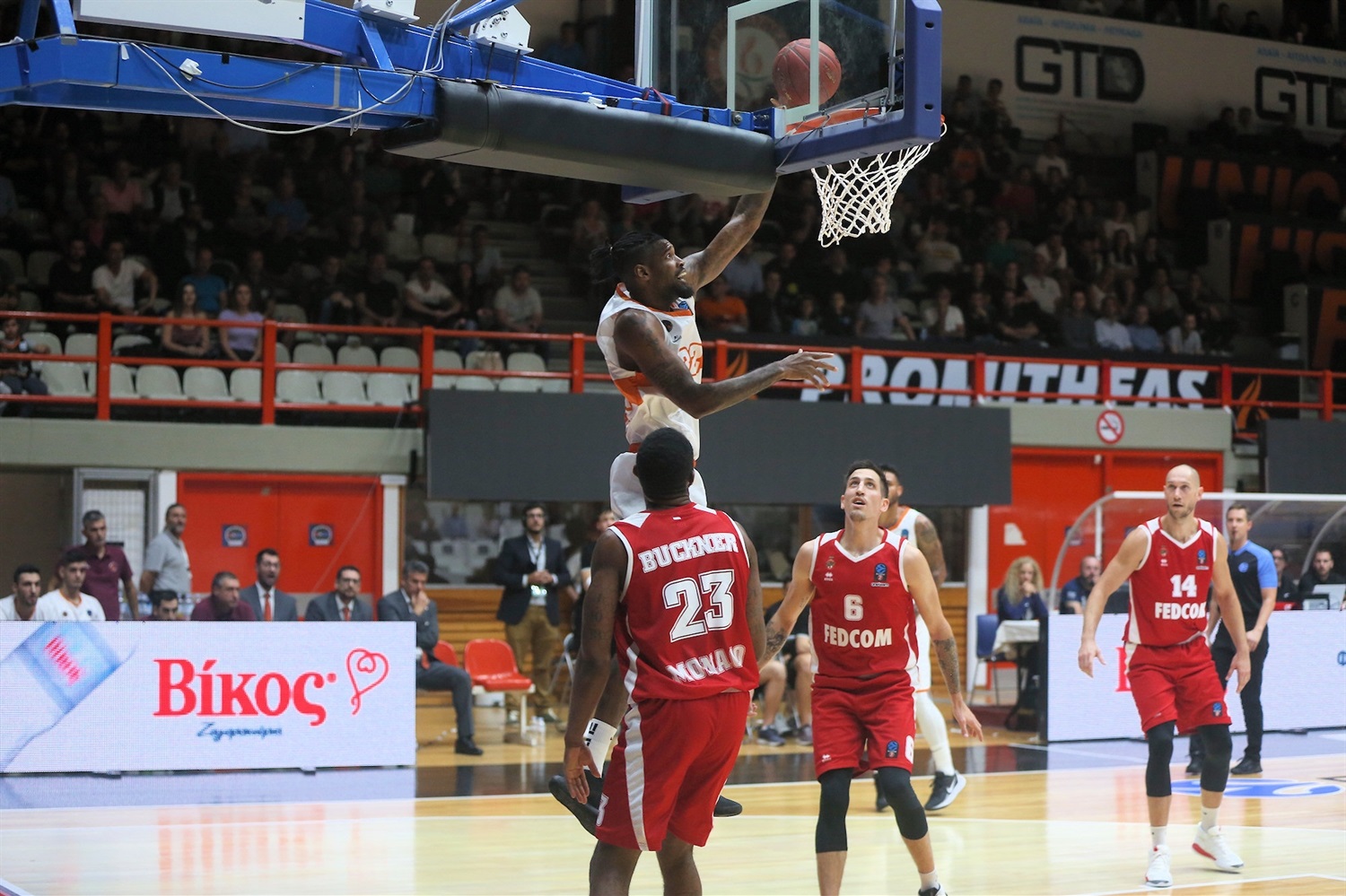 Ο αγώνας του Προμηθέα Πάτρας με την Ράτιοφαρμ Ουλμ στη Γερμανία έχει αρχίσει και η πλέον θεαματική φάση της αναμέτρησης μέχρι στιγμής ανήκει στους Αχαιούς με τον Λάνγκστον Χολ να υψώνει για το κάρφωμα του Οκτάβιους Έλις.