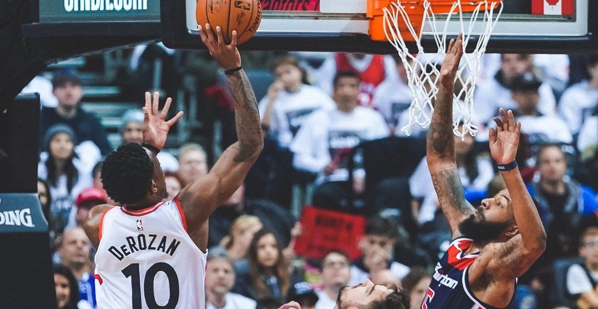 Οι Τορόντο Ράπτορς κέρδισαν με 114-106 τους Ουάσινγκτον Ουίζαρντς στο «Air Canada Center» και ξεκίνησαν για πρώτη φορά στην ιστορία τους στα πλέι οφ με εντός έδρας νίκη.
