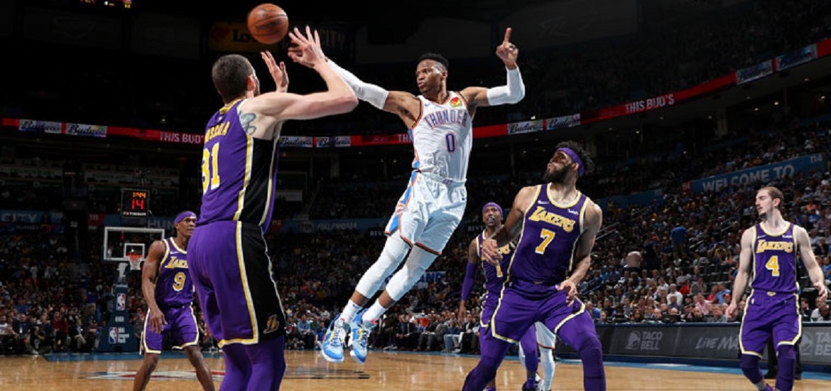 Στα αγωνιστικά, έχοντας 20π., ισάριθμα ριμπάουντ και 21 ασίστ ο Ράσελ Ουέστμπρουκ οδήγησε τους Οκλαχόμα Σίτι Θάντερ στη νίκη με 119-103 επί των Λος Άντζελες Λέικερς. Έτσι, έγινε μόλις ο δεύτερος παίκτης στο «μαγικό κόσμο» που έγινε «τριπλός» με τέτοιες επιδόσεις, με τον πρώτο να είναι ο Ουίλτ Τσάμπερλεϊν (22π., 25 ριμπάουντ, 21 ασίστ) από το μακρινό 1968.