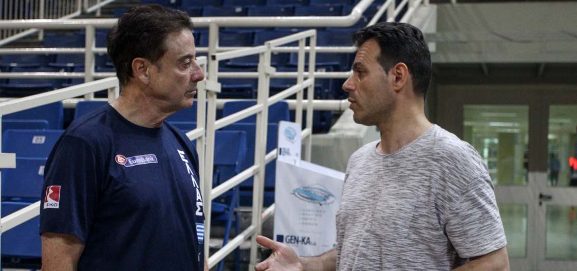 Οι κάμερες των φωτογράφων έπιασαν τους δύο άνδρες να συνομιλούν στο παρκέ του κλειστού των Ολυμπιακών εγκαταστάσεων, το οποίο επισκέφθηκε ο Δημήτρης Ιτούδης, ενώ την ίδια ώρα, ο Πιτίνο βρισκόταν εκεί για την προπόνηση αλλά και τη συνέντευξη τύπου της εθνικής ομάδας, πριν το τουρνουα "Ακρόπολις". Την ώρα της ολιγόλεπτης συνομιλίας τους, οι Έλληνες διεθνείς πραγματοποιούσαν το "χαλάρωμα' τους, για να ακολουθήσει στη συνέχεια η καθιερωμένη προπόνηση, από την οποία, η ΕΟΚ μας έδωσε και μία μικρή "γεύση", ανεβάζοντας βίντεο στον επίσημο λογαριασμό της στο Twitter κάποια βίντεο: