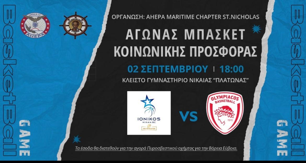 Ο Ιωνικός θα φιλοξενήσει τον Ολυμπιακό στο κλειστό του «Πλάτωνα» σε ένα φιλικό παιχνίδι που θα έχει φιλανθρωπικό χαρακτήρα.