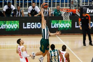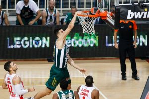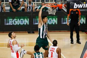 Στο… πόδι σήκωσε το ΟΑΚΑ ο Ντίνος Μήτογλου με το εντυπωσιακό κάρφωμα που πραγματοποίησε μπροστά στον Ουέσλι Τζόνσον. Ο σέντερ του Παναθηναϊκού δέχτηκε την πάσα του Ουέσλι Τζόνσον σε αιφνιδιασμό του «Τριφυλλιού», κάρφωσε και προσφέροντας ένα από τα highlights της αναμέτρησης.
