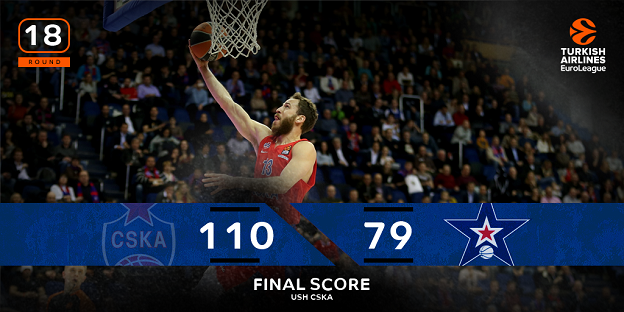 Στη Μόσχα η ΤΣΣΚΑ... βρήκε και έκανε σόου, απέναντι στην απελπιστική για μια ακόμα φορά Εφές, την οποία συνέτριψε με 110-79 και έτσι παρέμεινε μόνη πρώτη και έκανε μια καλή προθέρμανση εν όψει του μεγάλου αγώνα της Παρασκευής στο ΟΑΚΑ.