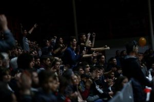 Στο κατάμεστο κλειστό των Μποζαϊτίκων, είχαμε άλλωστε sold out, οι φίλοι των δύο αντιπάλων παρακολούθησαν μαζί τον αγώνα χωρίς να προκύψει το παραμικρό πρόβλημα και χωρίς να υπάρχουν διαχωριστικές ζώνες ανάμεσά τους. Η παρουσία της αστυνομικής δύναμης ήταν διακριτική, εξάλλου δεν χρειάστηκε η επέμβασή της σε κανένα σημείο της αναμέτρησης, με τους φιλάθλους να κάθονται δίπλα δίπλα και να απολαμβάνουν το ματς, υποστηρίζοντας ο καθένας δίχως ακρότητες την αγαπημένη του ομάδα.